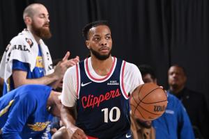 本场比赛,快船新援加兰迎来主场首秀,进攻端里突外投加串联明显适应得多,他替补出战24分钟,10中5,三分4中2拿到12分4篮板8助攻,正负值高达+20!
