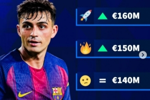 体育资讯3月15日讯 德转将在明日更新西甲球员身价,并预热佩德里最新身价可能发生变化。