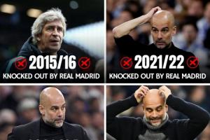 年年碰苦主!曼城欧冠淘汰赛已连续5年与皇马相遇,4次均遭其淘汰