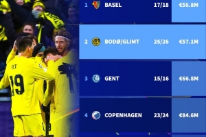 德国转会市场盘点了近10个赛季闯进欧冠16强身价最低球队排行,博德闪耀第二低,仅高于2017-18赛季的巴塞尔。