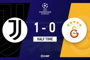 上半场伤停补时4分钟,半场结束,尤文图斯暂1-0加拉塔萨雷。