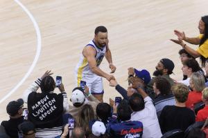 对手归对手!还是Respect!快船球迷脸色铁青推开库里 但碰拳收尾
