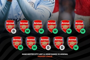 据livescore数据统计,曼城主场对阵阿森纳已连续11场8胜3平保持不败,枪手始终未能在伊蒂哈德球场取胜。